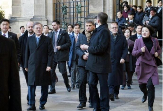 이때 체코 대통령은 외국 방문 중이었는데 굳이 체코를 방문.