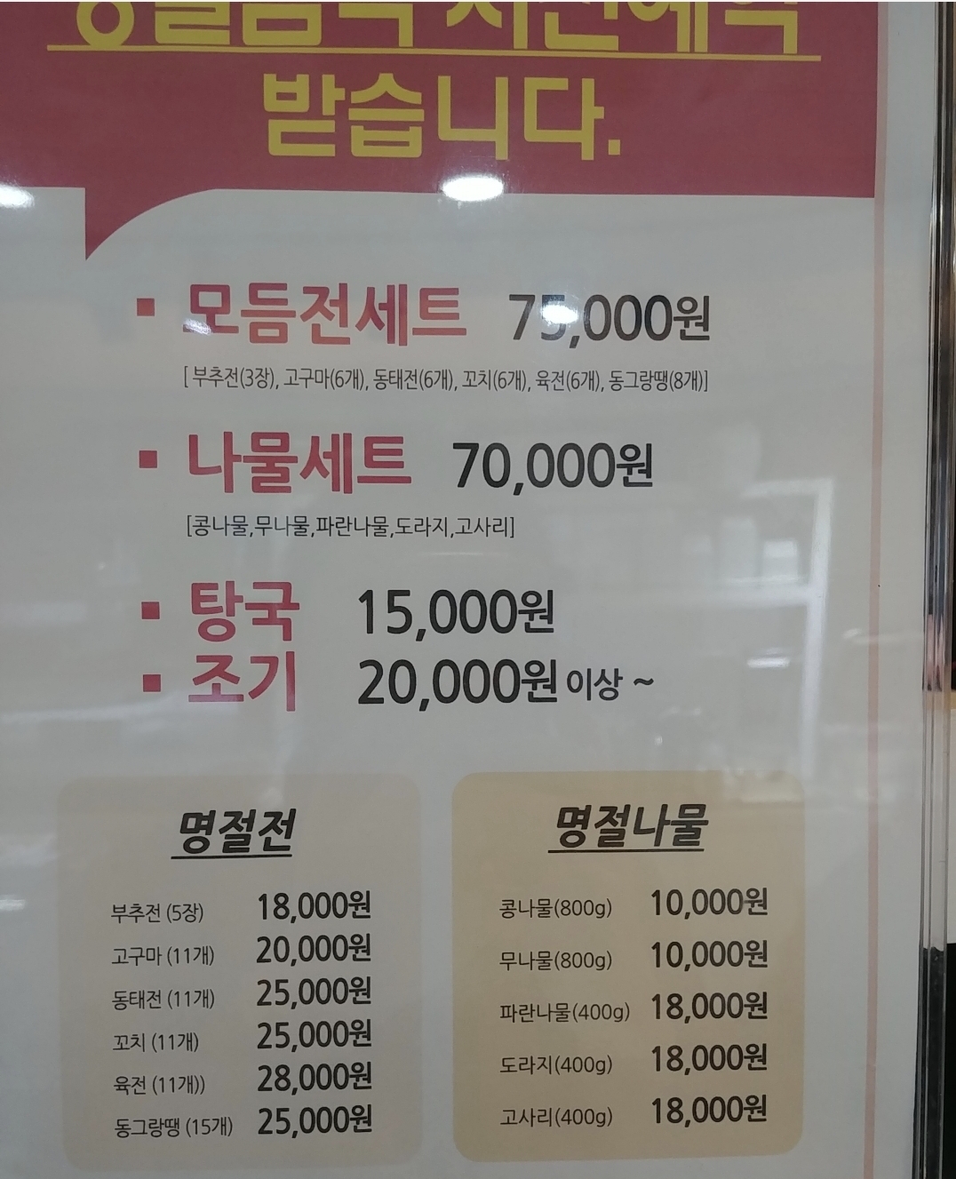 이제 설 며칠 앞두고 음식예약주문이 들어오고 있네요.