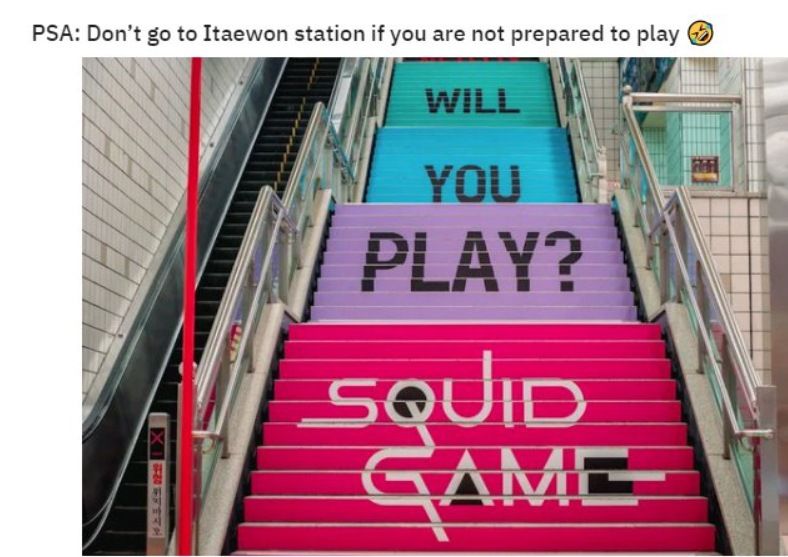 참으로 오징어게임의 밈(Meme)현상이 국내를 넘어 국가와 민족을 초월해서 유행하고 있다는것이 실감됩니다.