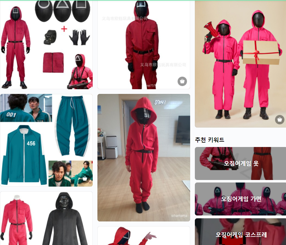10월할로윈데이를 맞아 오징어게임코스튬의 인기는 하늘을 찌를 정도였네요.