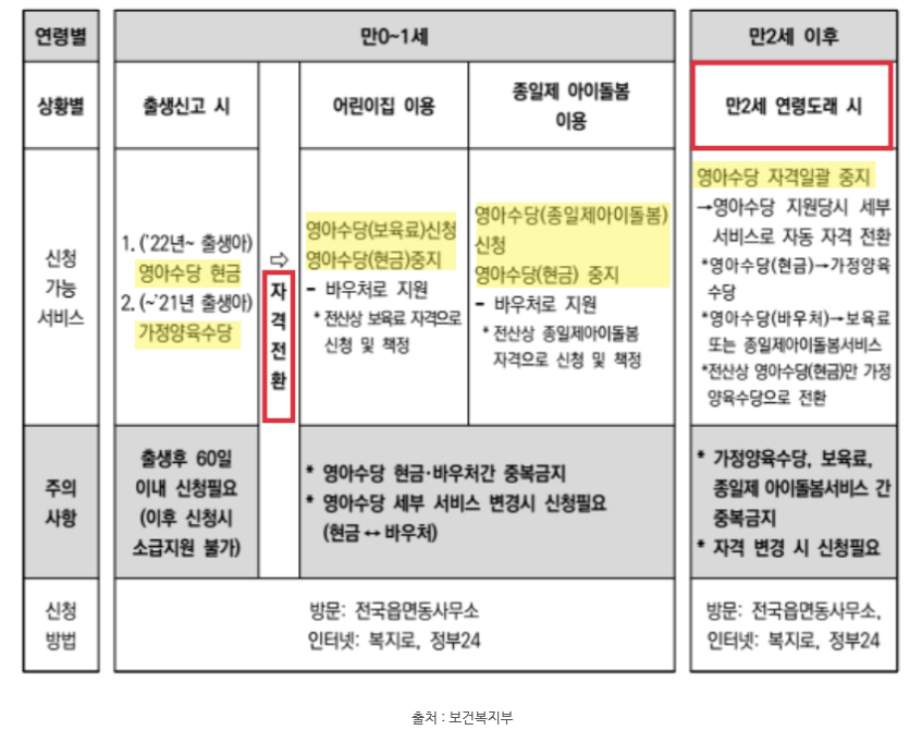 - 지원대상 :0~1세 자녀 (2022년 1월 1월이후 출생아동)