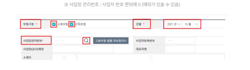 사업장 관리번호를 모를 때는 사업자번호 뒤에 0을 입력하시면 됩니다.