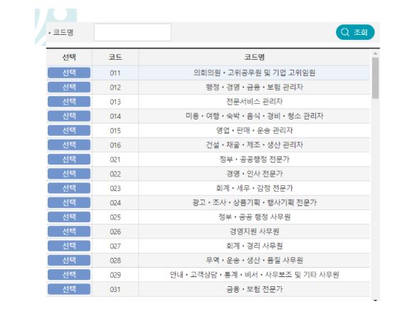직종란에는 직종 번호를 검색해서 입력해주세요.