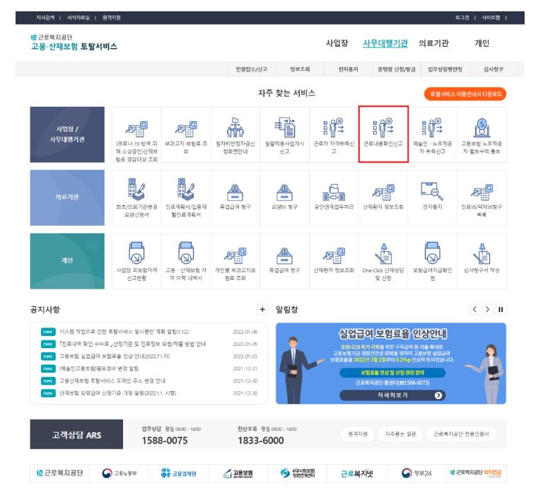 ① 근로복지공단 토털 서비스 접속 후 신고 또는