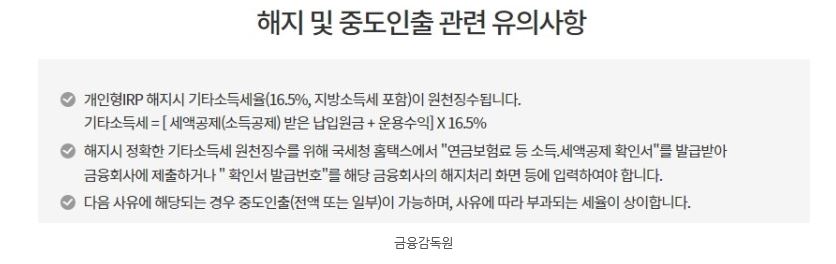 해지, 중도인출은 퇴직 연금 상품이므로 특별한 경우가 아니면 힘드므로, 가입 시 유의하셔야 합니다.
