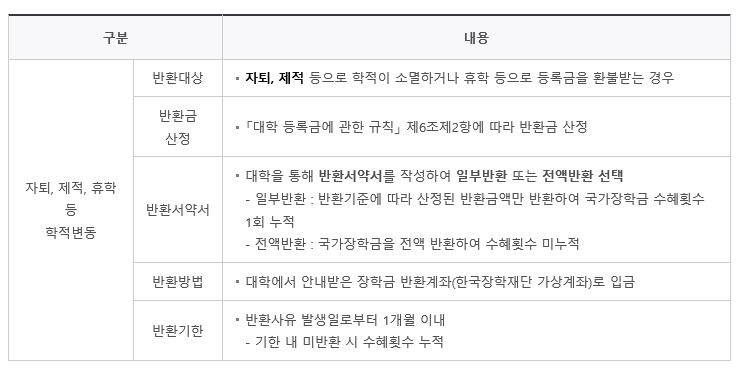 ⊙ 자퇴, 휴학시 국가장학금 반환