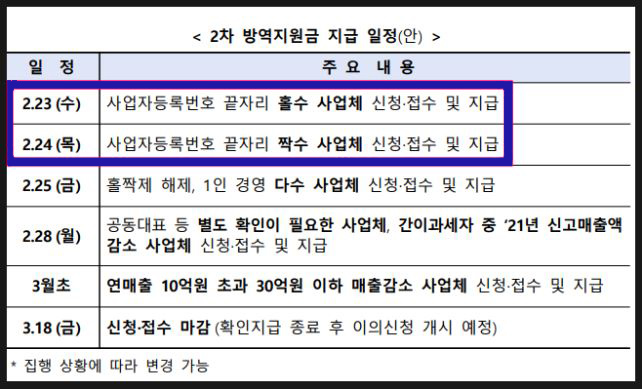 ▷ 사업자 끝 번호의 홀, 짝수제로 신청 및 지급