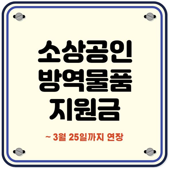 이번 소상공인 방역물품 지원금 신청기간이 2월25일에서 3월25일로 연장되었습니다.